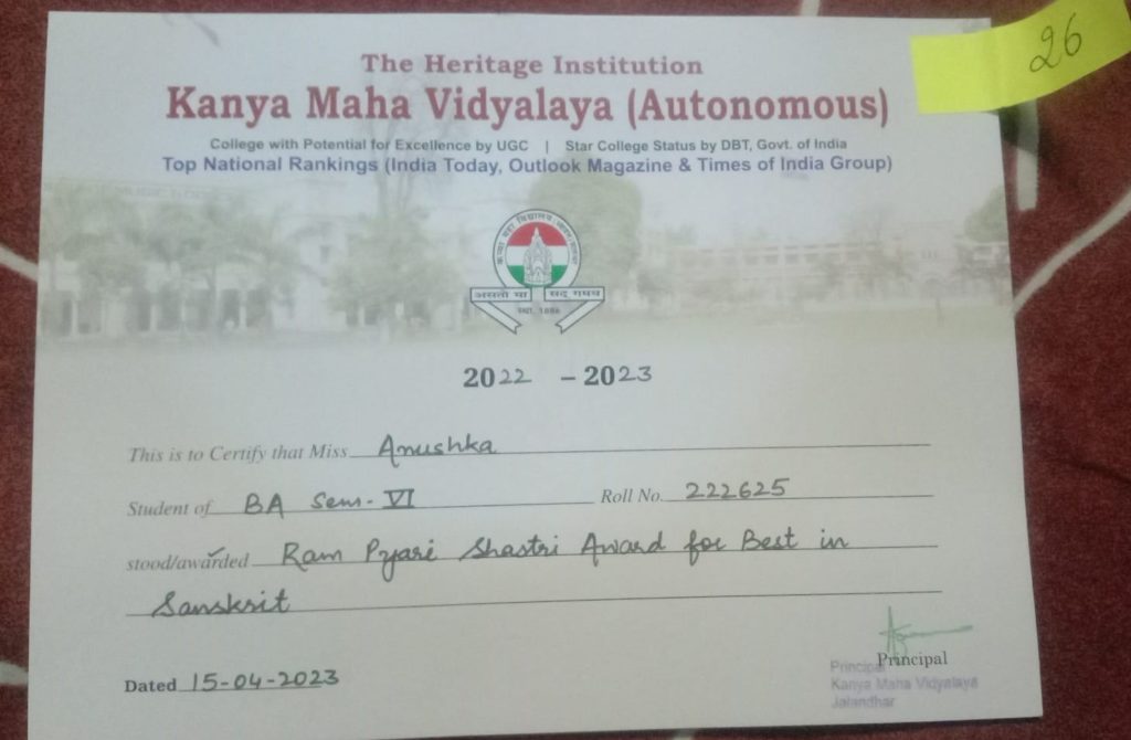 Anushka Award of Best Student in Sanskrit, 2023 Back