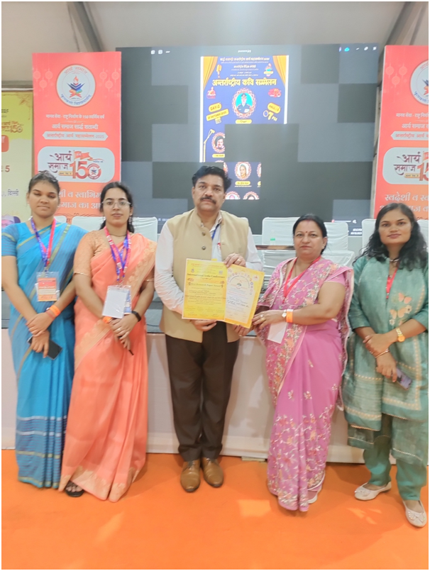 DR ( Mrs) Neeraj Sharma, Associate Professor and Head, Department of Sanskrit received the”  BEST  RESEARCH  PAPER  AWARD “ in  the  International Conference on the Theme , “ The Contribution of Rishi Tradition in the Reconstruction of Golden India. “30th to 31st October, 2025 at Rohini, New Delhi .150 th Arya Maha Sammelan .