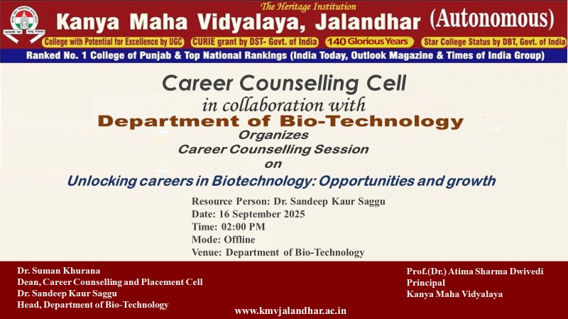 Career Counselling Session on “Unlocking Careers in Biotechnology: Opportunities and Growth Back