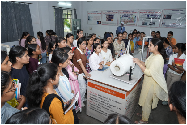 The P.G. Department of Physics at Kanya Maha Vidyalaya celebrated National Technology Day on May 15, 2025, with great enthusiasm to commemorate India’s technological milestones, particularly Operation Shakti conducted under the leadership of AtalBihari Vajpayee. More than 55 science students participated in the program, which began with a discussion on the historical significance of the day. Dr. NeetuVerma, Head of the Department, delivered an insightful presentation highlighting India’s technological evolution in nuclear science, space research, and digital communication, inspiring students toward innovation and nation-building. The event also featured live demonstrations of advanced physics experiments, connecting theory with real-world applications. A guided visit to the Departmental Innovation Hub further provided students hands-on exposure to research projects and prototypes, motivating them to pursue research-oriented careers in science and technology.