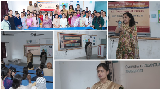 Kanya Maha Vidyalaya celebrated World Quantum Day on April 15, 2025 under the National Quantum Mission, with around 100 science students participating enthusiastically. Organized by the Department of Physics, the event aimed to deepen understanding of quantum mechanics and its technological relevance.Dr.NeetuVerma inspired students to adopt research-oriented thinking, highlighting quantum mechanics as the backbone of modern innovations in computing, communication, and materials science. Harmeet Kaur (M.Sc. Semester IV) delivered an insightful presentation on “Quantum Transport,” explaining MOSFET miniaturization and the transition from classical to quantum regimes. B.Sc. Semester IV students showcased projects on quantum tunneling, cryptography, lasers, and LEDs, while Dr.Sangeeta Prasher elaborated on electron spin and its role in quantum technology.The celebration served as a dynamic platform for academic exchange, fostering curiosity and strengthening the institute’s research-driven culture.