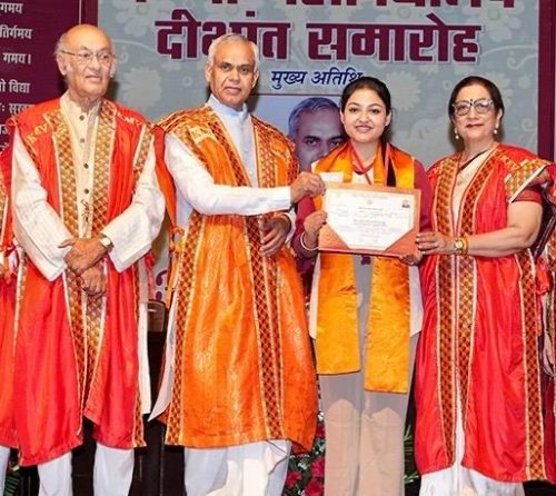 Kanya Maha Vidyalaya (Autonomous) organised the Annual Convocation in order to celebrate the successful completion of various academic levels of its scholars. The chief guest Hon’ble Governor of Gujarat, Acharya Devvrat was accorded floral felicitations on this occasion by Sh. Chander Mohan, President, Arya Shiksha Mandal and Director Prof. Atima Sharma Dwivedi. Eminent members of KMV Managing Committee, Vice President Dr. Sushma Chawla, General Secretary Sh. Alok Sondhi, Sh. Dhruv Mittal, Dr. Sushma Chopra, Dr. Satpal Gupta also graced the occasion with their invaluable presence. On this occasion, Prof. (Dr.) Sudhir Arya, Department of Sanskrit, Jawaharlal Nehru University, New Delhi was also present. The proceedings of this formal event commenced with the lighting of the holy lamp and recital of Vande Matram. Welcoming the distinguished and illustrious guest, KMV Director Prof. Atima Sharma Dwivedi read out a detailed report enumerating the Vidyalaya’s meritorious achievements at national as well as international levels in diverse fields like Academics, Co-academics, Research, Sports, NCC and Placements. She highlighted that challenges posed by rapidly changing socio-economic environment and job markets in contemporary times demand new skill sets and competencies among young generations. Such challenges can only be overcome with a right blend of transformational and progressive measures with value-based holistic education that is the hallmark of academic life at KMV. The academic autonomy of KMV has given a clear field to implement upgraded relevant curriculum, innovative teaching methodologies, focus on learning outcomes, exposure to the larger world, global standards in teaching, Internships and international partnerships with Academia and Industry. These successful initiatives implemented in letter & spirit are the winning streaks of KMV that has been forging new pathways with accelerated changes towards evolution of human society for past 140 years. In his presidential remarks, Sh. Chander Mohan, President, Arya Shiksha Mandal welcomed Acharya Devvrat to the College campus whose visit has added one more name to the impressive list of illustrious visitors who have left their indelible imprints on time. Congratulating the students on the successful completion of a significant phase of their academic journey, Sh. Chander Mohan urged upon the need that all educational institutions and policy makers must resolve to bring about transformative changes on educational landscape to empower today’s youth with strong wings to fly towards zenith of success. The Guest of Honour Sh.Vinay Arya, General Secretary of Delhi Arya Pratinidhi Sabha urged the present generation of scholars to take pride in the premier heritage of KMV and be the true legacy bearers with their distinct accomplishments to adorn the walls of ‘Hall of Fame.’Delivering his Convocation address, the Chief Guest Hon’ble Governor of Gujarat, Acharya Devvrat congratulated the young scholars on receiving their degrees and also shared his illuminating views on Character-building feature embedded in Education. The Gujrat Governor underscored the importance and contribution of Arya Samaj and Vedic ideology in bringing about a transformative societal change through women education. He lauded the role of Arya Samaj and Swami Dayanand Saraswati who reintroduced these spiritual texts to the mankind and the result was the emergence of pioneer institutions like Kanya Maha Vidyalaya. The inception of this iconic institution in 1886 was laying a foundation for other women institutions in Northern India in the times to come. The event also witnessed the release of a book named A Legacy of Excellence -Kanya Maha Vidyalaya that chronicles the Vidyalaya’s progressive journey since its inception to the present era. The Department of Home science and Nutrition & Wellness also released a book named Annam Brahma that is a potpourri of traditional recipes reinvented by the students to promote health and nutrition. The formal vote of thanks was delivered by Sh. Alok Sondhi, General Secretary, KMV Managing Committee who expressed his gratitude to all the distinguished guests for adding stature to this formal event. It is noteworthy that as many as 580 students were awarded degrees for UG and PG level courses in Humanities, Sciences, Commerce and IT along with Vocational Studies during the convocation. Director Prof. (Dr.) Atima Sharma Dwivedi lauded the efforts of Dr. Madhumeet, Dean, Department of Student Welfare & Dr. Sabina Batra for successfully organising the convocation.