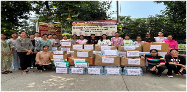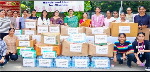 Kanya Maha Vidyalaya the Heritage and Autonomous Institution, Jalandhar in a heartening show of empathy joined relief operation for the flood affected people in Punjab. The drive was conducted to provide material help and relief to the lakhs of people who have suffered due to the heavy floods in several areas and other affected areas in Punjab. A large number of students, faculty and staff came forward and donated a variety of materials including clothes, shoes, linens, soaps, sanitary napkins, bed-sheets, baby diapers, personal hygiene items, sleeping mats, towels and various consumable items like water bottles, rice, wheat, refined oil, sugar, tea, toothpaste, brush, combs and other important things for the flood victims.