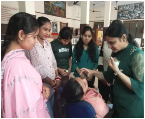 Kanya Maha Vidyalaya (Autonomous) has taken a lead in working for the social upliftment of the rural women through its various social outreach programmes. In this context KMV has started a three months free Vocational Training Programme in Cosmetology for the under privileged women under the aegis of the Gandhian Studies Centre in which women from the villages and neighbouring localities have enrolled in this course. It is pertinent to mention that for more than a decade KMV through this programme has empowered thousands of rural women by providing free vocational training to them in various courses such as Cosmetology, Fashion Designing and Basic Computer courses in the campus and in the villages also. Principal Prof. Dr. Atima Sharma Dwivedi encouraged these women to take up this opportunity provided by the college and to become financially independent and empowered & also assured them all possible help to achieve their goals.