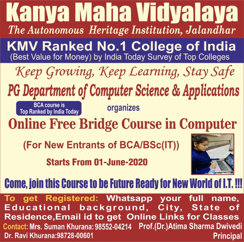 Reception Desk : 0181-2296605, 2296606 For Admission related queries : 7009969253,9814406986 Email Id : kmvoffice1886@gmail.com, kmvjalandhar@yahoo.com