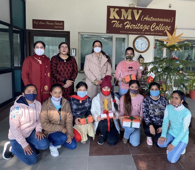 Kanya Maha Vidyalaya- the Heritage & Autonomous institution, Seat of Women Empowerment with Top National and State Rankings by India Today Survey of Best Colleges 2020 (various categories) & Outlook Magazine celebrated the auspicious festival of Christmaswith religious gaiety, fervour and enthusiasm. Various activities were organised by the PG Department of English&Department of Student Welfare jointly for the students to celebrate the festival of Christmas. Activities held during the celebration aimed at improving knowledge, friendship and sense of belonging among the students. Various activities such as Christmas Carols &English Songs, Christmas Card making &Poetry competition were held during the celebration. Principal Prof. (Dr.) Atima Sharma Dwivedi gave her kind wishes to all the students and the faculty members of the college on this auspicious occasion and averred that the message of Jesus Christ of Universal Brotherhood, Communal Harmony and the service of poor should motivate each and every person to contribute for the betterment of the society. She also wished that this bonhomie and harmony should ever prevail in KMV. Madam Principal lauded the efforts of Dr Madhumeet, Head, PG Department of English for successfully organising the celebrations.