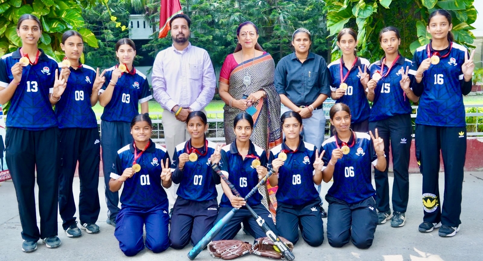 Kanya Maha Vidyalaya Collegiate Sr. Sec. School team bagged winning position in District Baseball Championship. Team players namely Kamalpreet kaur, Amanatdeep kaur, Jasneet  Kaur, Pranjal, Bhupinder Kaur, Sonal Sharma, Manveer Kaur, Samriti, Diveanshi, Simranjeet Kaur& Payal Rani displayed their sportsmanship brilliantly and made their institution proud. Principal Prof. Dr. Atima Sharma Dwivedi congratulated the students on their achievement. She averred that players at KMV are provided many facilities which include free education, hostel, mess & transport facilities. They avail a lot from state of the art infrastructure comprising Gymnasium, Health Club, Swimming Pool and sprawling play grounds. All these exceptional facilities elicit such excellent outcomes. Prof. Atima Sharma Dwivedi also adumbrated that KMV will continue to provide these facilities to the students who continue to prove their mettle in sports arena. Madam Principal also lauded the efforts ofDr Davinder, Ms Amandeep & Coach Mr. Philip Chouhanfor this achievement.