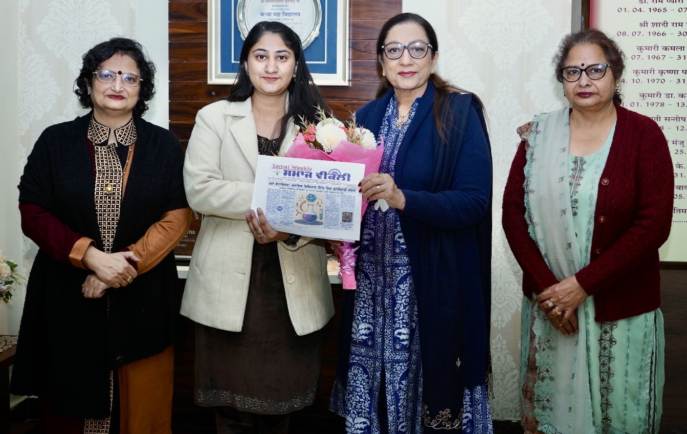 KMV Collegiate Sr. Sec. School faculty member Ms. Manpreet Kaur, Chemistry department, has achieved remarkable success with not just one, but two of her articles published internationally and nationally. Her article titled “A Catalyst” was published in Samaj Weekly, a reputed UK-based newspaper. Adding to this honour, Ms. Kaur has also had another article titled “Nano Medicine” published in a Punjab-based newspaper, further highlighting her dedication to disseminating scientific knowledge at both global and regional levels. This article reflects her interest in emerging scientific innovations and her commitment to promoting awareness about cutting-edge research in the field of chemistry. Ms. Kaur’s contributions showcase her deep subject expertise, passion for science education, and her ability to simplify complex concepts for readers. Her works have earned her notable appreciation from students, colleagues, and the academic community. Prof. Dr. Atima Sharma Dwivedi, congratulated Ms. Kaur for these distinguished achievements and commended her for bringing recognition to the institution at both international and national platforms. She averred that this double accomplishment stands as a proud moment for KMV Collegiate Sr. Sec. School, reaffirming its dedication to academic excellence, innovation, and research-driven learning.