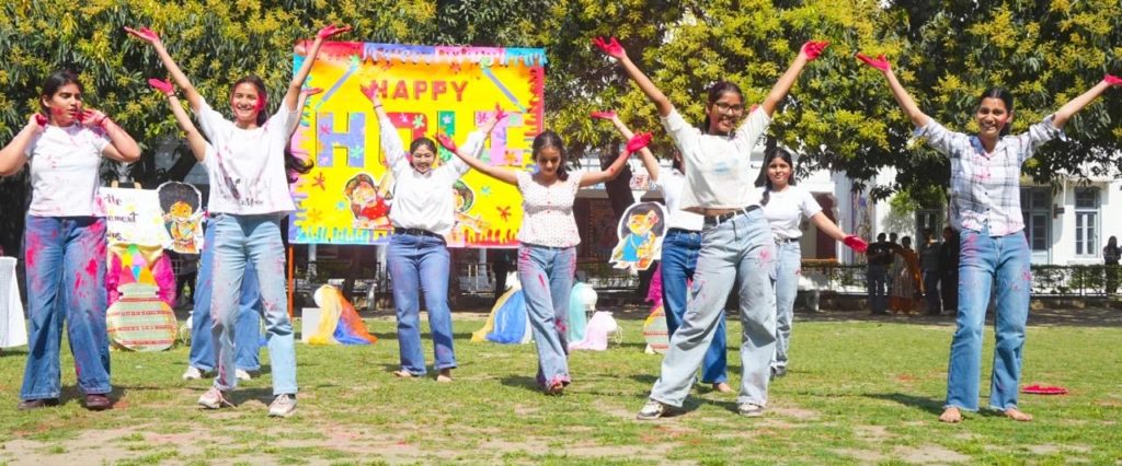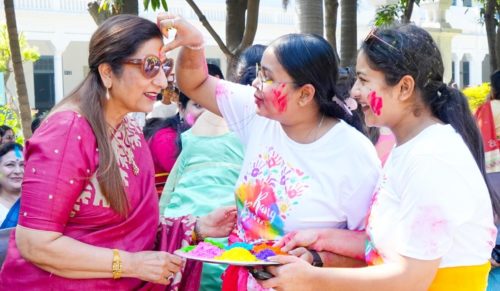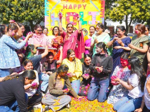 Kanya Maha Vidyalaya (Autonomous) celebrated the festival of Holi with full zeal and enthusiasm. A special program was organised on this occasion in which Tilak Holi was celebrated in Eco-friendly manner in order to spread the message of environment cleanliness. Prof. (Dr.) Atima Sharma Dwivedi along with the faculty members of the college celebrated Holi with the flowers to mark the festival of joy and happiness. During the celebration, sweets were also distributed among all the staff members of the college. On this occasion, Department of Music also sang songs and musical renditions related to the festival of colors. Prof. Dwivedi congratulated one and all on this auspicious occasion. She averred that such festivities give a break from the monotonous routine and are therefore always welcomed. She further maintained that one gets acquainted with the rich culture & heritage of our Indian tradition by celebrating the festivals with each other in harmony.