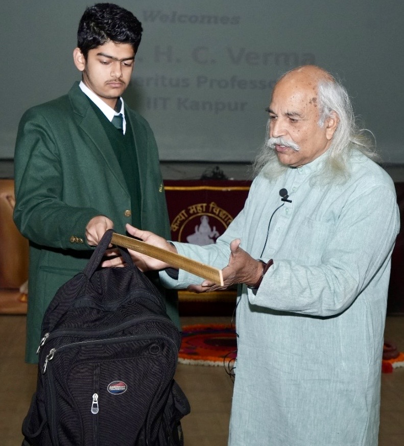 Kanya Maha Vidyalaya (Autonomous) had a proud privilege to host renowned Indian experimental physicist, author and Padma Shri awardee Prof. Harish Chandra Verma, popularly known as HCV, during an inspiring and interactive experimental physics workshop. Prof. Verma, an emeritus professor at the Indian Institute of Technology Kanpur (IIT-Kanpur), is highly regarded for his significant contributions to physics education and his approachable teaching methods. The workshop saw the enthusiastic participation of more than 500 students, including those from KMV and nearby schools, eager to learn about the wonders of physics. Prof. Verma during the workshop showcased a variety of live demonstrations, effectively illustrating complex concepts in physics and making them easily understandable for the students. Prof. Verma also emphasized upon the importance of observation, critical thinking and inquiry-based learning in developing a deeper understanding of physics. His ability to simplify intricate theories into relatable experiments made the subject highly engaging for the students, many of whom expressed their newfound excitement about the subject. During the workshop, the students were able to ask questions, actively participate in the experiments, and witness scientific principles come to life in real-time. Following the workshop, the students participated in an exciting experimental video quiz show named the LEPTON (Learning Physics through Nature) Program was organised. The quiz allowed students to test their newfound knowledge in a fun and competitive environment. The event also coincided with the celebration of International Quantum Year, during which an expert talk on quantum networks was also delivered, offering valuable insights into this cutting-edge field of research. Principal Prof. (Dr.) Atima Sharma Dwivedi commended the efforts of Prof. HC Verma and expressed her appreciation for his dedication to making science, particularly physics, accessible and engaging for students. She also emphasized the importance of fostering a scientific mindset and critical thinking among young learners. She averred that this enriching session not only celebrated the beauty of physics but also highlighted the importance of interactive learning and its potential to inspire the next generation of scientists and thinkers. Madam Principal lauded the efforts of P.G. Department of Physics for taking such brilliant initiatives.
