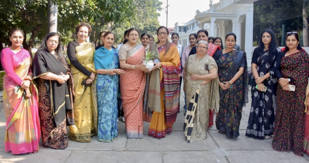 Kanya Maha Vidyalaya (Autonomous) inaugurated a Wall Magazine on the theme of ‘Renaissance Age – A Nest of Singing Birds’ an important literary movement. The magazine covers the major poets of the age: the celebrated bard William Shakespeare, focusing on the themes of love, beauty and time through his Sonnets, the great poet John Donne, representing the intellect through his Metaphysical School of poetry and  John Milton’s  Epic work ‘Paradise Lost’. The  Wall Magazine has been  prepared by the students of MA English and MA (English) Five Years Integrated Programme. During the inauguration, the students enthusiastically participated, reading out engaging excerpts and stanzas from Donne’s famous love poems and Milton’s epics. Students also delved into the concept of the Metaphysical Conceit in John Donne’s poetry. The students put up a strenuous effort to decorate the board with beautiful charts and illustrative drawings. Principal Dr. Atima Sharma Dwivedi inaugurated the wall magazine with a traditional ribbon cutting ceremony and averred that activities like these give the students a platform to showcase their creativity and deeper understanding of literary concepts. Madam Principal lauded the efforts of Dr. Madhumeet, Head, PG Department of English, and all the students for successfully preparing the wall magazine.