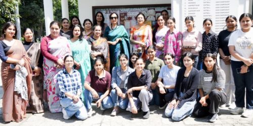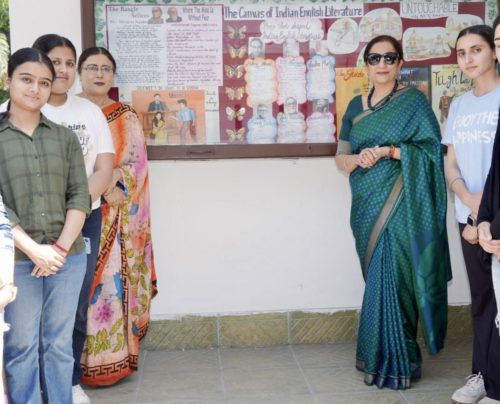 Kanya Maha Vidyalaya (Autonomous) inaugurated a vibrant and informative Wall Magazine display titled “The Canvas of Indian English Literature” to showcase the richness and diversity of Indian writing in English. Director Dr. Atima Sharma Dwivedi inaugurated the wall magazine with a traditional ribbon cutting ceremony and averred that activities like these give the students a platform to showcase their creativity and talent. The exhibit highlighted the contributions of eminent writers such as Sarojini Naidu, Rabindranath Tagore, R. K. Narayan, Mulk Raj Anand, and Sudha Murty. The display featured well-known literary works including “Untouchable”, “The Guide”, “Train to Pakistan”, and “Tughlaq”, reflecting themes of social justice, human values, and cultural identity. The play “Silence! The Court is in Session” by Vijay Tendulkar, was also showcased, emphasising issues of gender and societal norms. The presentation successfully highlighted how Indian English literature serves as a powerful medium to express the country’s social realities, traditions, and evolving perspectives. The students put up a strenuous effort to decorate the board with beautiful charts. Prof. Dwivedi lauded the efforts of Dr. Madhumeet, Head, PG Department of English and all the students for successfully preparing the wall.