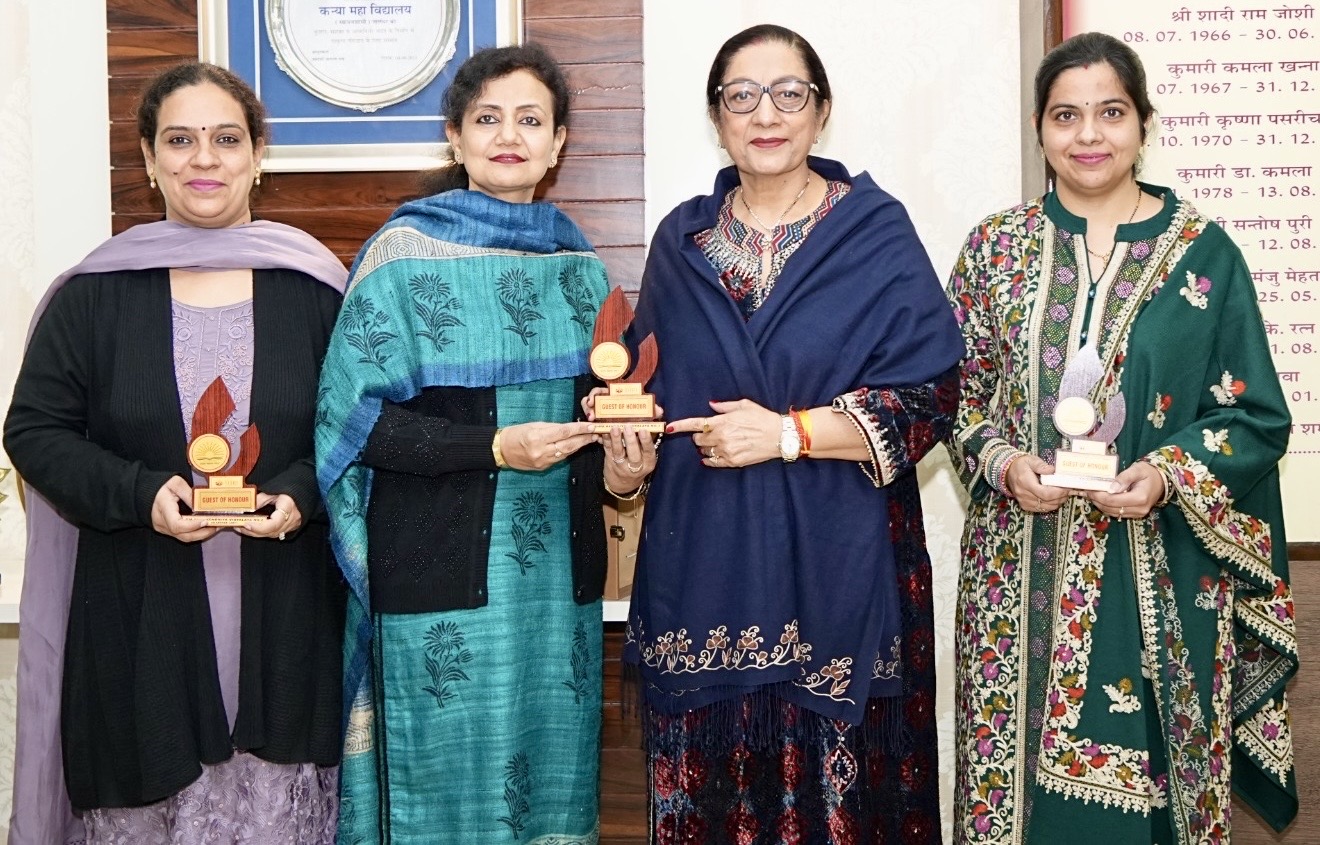 As part of the national initiative Viksit Bharat Buildathon 2025, dynamic mentoring sessions were organized by Kanya Maha Vidyalaya (Autonomous) for the students of Kendriya Vidyalaya-1, Kendriya Vidyalaya-2, Kendriya Vidyalaya-3, Govt. High School, Rohjari, Jalandhar under the Development of Innovation Culture and Entrepreneurship Program (DICE). The sessions were conducted by Dr. Rashmi Sharma, Convenor, KMV-IIC, Dr. Rashmi Bindra and Dr. Sandeep Saggu who brought their expertise in innovation, equity, and entrepreneurship to guide students through the ideation and prototyping process. During the sessions, students engaged in interactive discussions, design-thinking exercises, and real-world problem identification. The resource persons emphasized the importance of aligning creativity with national priorities and inspired students to think critically, act collaboratively, and innovate responsibly. The objectives of conducting mentoring sessions under the Viksit Bharat Buildathon 2025 were to introduce students to the vision of Viksit Bharat 2047, foster creativity and problem-solving through design-thinking methods, and align their innovations with national priorities of self-reliance, sustainability, and inclusivity. Prof. (Dr.) Atima Sharma Dwivedi commended the initiative and emphasized that such engagements play a pivotal role in nurturing young minds, strengthening their innovative capacities, and preparing them to contribute meaningfully to the nation’s developmental vision. She further maintained that this initiative reflects KMV’s commitment to nurturing future-ready citizens and reinforces the vision of a Viksit Bharat—a developed, self-reliant India by 2047.