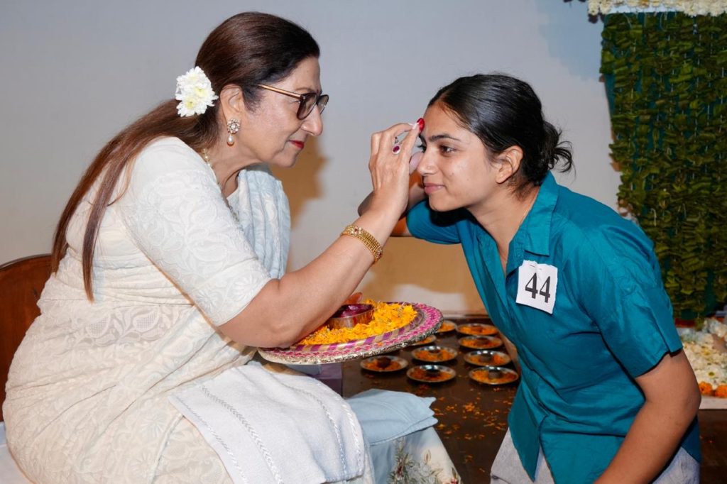 Kanya Maha Vidyalaya (Autonomous) organized ‘Amar Jyoti,’ a farewell ceremony for students completing their education in the current academic session. This ceremony, which leaves an impression of simplicity and purity, is an integral part of the institution’s glorious tradition. The prestigious event was graced by the presence of Chief Guests Prof. Amit Kauts, Professor, Department of Education, Guru Nanak Dev University, Amritsar and Mrs. Deepa Kauts, Head, Department of Education, Guru Nanak Dev University, Amritsar. Other distinguished attendees included Dr. Sushma Chawla, Vice President, KMV Managing Committee, Dr. Sushma Chopra, Secretary, KMV Managing Committee,     Mr. Dhruv Mittal, Treasurer, KMV Managing Committeealong with Dr. Deepali Luthra, Mrs. Shiv Mittal, and Mrs. Neeru Kapoor, Members from the KMV Managing Committee. Following the lighting of the lamp, Director Prof. Dr. Atima Sharma Dwivedi welcomed the guests, noting that the ceremony perfectly reflects the institution’s balance of modernity and tradition. She paid homage to the historic land of KMV—a centre for progressive education and Indian culture—and wished the departing students success, hoping the education they received, aligned with the New Education Policy and international standards, would lead them to new heights. Chief Guest Prof. Amit Kauts addressed the students, stating that the success of an educational institution lies in creating an environment where values and life skills are naturally absorbed rather than just taught. He expressed his delight that KMV embodies such an environment and encouraged the women to prepare themselves for their vital roles in the upliftment of family and society with honesty and purpose. During the event, students expressed their emotions through traditional songs like ‘NamoDeshBhumi Namaste Namaste’ and ‘Jai Jai Janani Jai Jai Mata,’ and shared heartfelt memories of their time at the college. Director Prof. Dr. Atima Sharma Dwivedi gave her blessings to the graduates by applying the ‘Tilak’. The ceremony also honoured senior faculty members Dr. Gurjot and Dr. Neeraj Maini for their dedicated service to the institution. Additionally, the guests released several publications, including the PG Hindi Department’s annual journal ‘Unmeelan: Shodh aurSrijan,’ as well as the ‘ECA Newsline’ and ‘Sports Newsline’.Madam Director lauded the efforts of Dr. Madhumeet, Dr. Shalini Gulati, Dr. Poonam Sharma, and the whole organising committee for successfully organising the function.