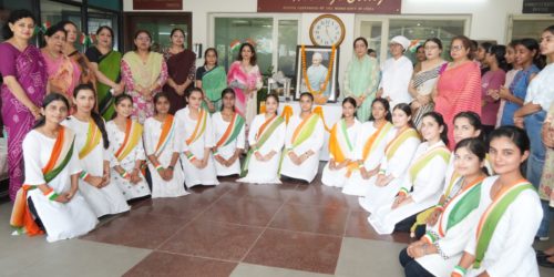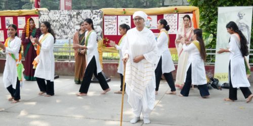 Kanya Maha Vidyalaya (Autonomous) paid its tribute to the Father of the Nation Mahatma Gandhi on his birth anniversary. The ceremony began with the lighting of the lamp by Principal Prof Dr Atima Sharma Dwivedi followed by floral tributes. Madam Principal called upon the youth to follow the path shown by him in these testing times. Speaking on the relevance of Gandhi, she further maintained that the principles of Swadeshi, Swachta and Sarvodya have become all the more relevant in the present world. She lauded the efforts of Gandhian Studies Centre of KMV which was first of its kind to be setup in any college in North India in 2007. She appreciated the efforts of this centre in spreading the awareness about the Gandhian philosophy among the different sections of the society. It is important to mention that KMV is a patriotic institution which actively took part in freedom struggle of our country as Gandhiji has said that Gujarat National College should be modelled on Kanya Maha Vidyalaya. On this occasion, students also showcased a street play on the relevance of Gandhi in today’s times. Along with this, students also presented their tribute to Gandhiji in the form of poems, songs and dance. PG Department of Music also sang soulful bhajans dedicated to the memory of Gandhiji. Madam Principal lauded the efforts of Dr Monica Sharma, Director, Gandhian Studies Centre for passionately working for the cause. Dr Madhumeet, Dean, Department of Student Welfar & Dr Gurjot were also present on the occasion.