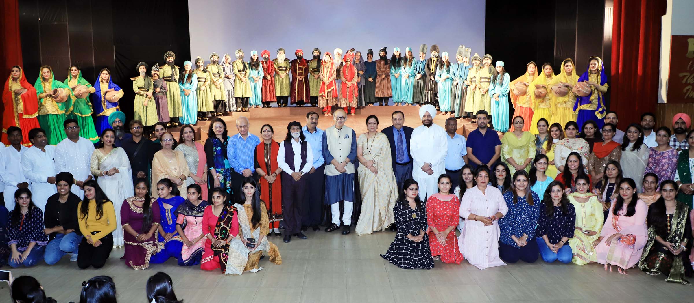 Kanya Maha Vidyalaya- the Heritage & Autonomous institution, Ranked No.1 College  in India by ‘ India Today ‘ Rankings in Various Categories presented ‘Gagan Mein Thaal’ Devotional Play by Balwant Gargi to commemorate the 550th birth anniversary of Guru Nanak Dev ji. Prof. (Dr.) Atima Sharma Dwivedi, Principal KMV averred that KMV have presented this play to commemorate the 550th Birth Anniversary of Guru Nanak Dev ji. The cast and crew were the students of KMV who enacted this magnum opus with great devotion and hard work. Many distinguished personalities such as Mr Chander Mohan, President, Arya Shiksha Mandal, Dr Sushma Chawla, Vice President, KMV Managing Committee,  Mr Alok Sondhi, General Secretary, KMV Managing Committee, Mrs Neerja Chander Mohan, Member, KMV Managing Committee, Smt Sushila Bhagat, Smt Neeru Kapoor, Dr Deepali Luthra, Mr Gurpreet Singh Bhullar, Commissioner Police, Jalandhar, Mr Diprava Lakra, Commissioner, Municipal Corporation, Jalandhar, Mr Jasvir Singh, ADC, Jalandhar, Mrs Paramjit Kaur Ghuman, Principal, Government Arts & Sports College, Jalandhar, Dr Iqbal Singh, Former Governor, Pondicherry along with other eminent personalities from civil administration & KMV Managing Committee graced the occasion with their luminous presence. Prof. Mahinder and Ms Shweta were the directors of the play who have put in their best efforts keeping in sync with the spiritual magnitude of the subject. Prof. (Dr.) Atima Sharma Dwivedi further maintained that the whole college has contributed to the presentation of the play. The costumes for the play were stitched by the students of PG Department of Fashion Designing, live music was performed by PG Department of Music, makeup was done by the PG Department of Cosmetology, digital effects was provided by the PG Department of IT & Animation & the event was organised by the PG Department of Punjabi. It is worth a mention that KMV has organized a series of programs to commemorate the 550th Birth Anniversary of Guru Nanak Dev ji. Some being the musical presentation of Mohan Singh’s ”Naankayan” & a seminar on ”Guru Nanak Bani: Mool Sarokaar Te Prasangikta”. All these events were organized in collaboration with Punjab Kala Parishad, Chandigarh.