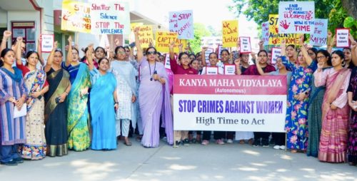 Kanya Maha Vidyalaya (Autonomous)launched an awareness campaign to strongly condemn the horrific rape and murder of a young doctor in Kolkata, West Bengal. A rally was also organised under the campaign, which witnessed the participation of students, faculty membersand staffwas a powerful demonstration of KMV’s commitment to fighting against the increasing instances of gender-based violence in the country.Carrying placards and chanting slogans titled Stop Crimes Against Women, the participants urged the public and authorities to take immediate and stringent action against the perpetrators of such heinous crimes. The rally aimed to not only express solidarity with the victim’s family but also to raise awareness among the masses about the urgent need to combat sexual violence and ensure safety for all women.As part of its broader initiative to address this critical issue, KMV has launched a comprehensive campaign against rape crimes. The campaign focuses on educating young minds about gender equality.Workshops, seminars, and self-defence classes have been organised on the campus to empower students and equip them with the knowledge and tools necessary to protect themselves and others.Adding to the momentum of the campaign, Radio VOW (Voice of Women), the online radio channel run by KMV, has dedicated a series of programs to this cause. Radio VOW is airing discussions and programmes to shed light on the complexities of sexual violence and the legal avenues available for victims. Principal Prof. Dr. Atima Sharma Dwivedi averred that KMV stands firm in its resolve to fight against rape and sexual violence. Through this rally and our ongoing campaign, we aim to empower our students and the community to take a stand against these injustices. We hope that our efforts will inspire others to join us in creating a society where women feel safe and respected.She further maintained that these kind of awareness events highlights KMV’s initiatives to combat rape and promote gender safety, emphasising the institution’s proactive role in community awareness and education.