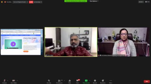 Kanya Maha Vidyalaya- the Heritage & Autonomous institution, Seat of Women Empowerment with Top National and State Rankings by India Today Survey of Best Colleges 2020 (various categories) & Outlook Magazine organised 2nd day of one week online national Faculty Development Program in collaboration with Guru Angad Dev- Teaching Learning Centre, SGTB Khalsa College, University of Delhi on Development of e-content & MOOCS in Four Quadrants sponsored by Department of Biotechnology, Government of India. The first technical session of Day 2 was delivered by Dr. Arun Julka, Associate Professor, Agarsen College, Delhi University. He delivered his talk on the topic ‘Renderforest and Canva’. Dr. Jhulka gave hands on training on the use of Renderforest for creating puzzle logo animations, use of whiteboard animation tool for creating animated videos to make the lecture interesting for the students with minimal time and efforts. He also gave detailed explanation as to how the animated videos can be employed for teaching in the class and how they can be shared on the social media. Dr. Jhulka further elaborated the use of canva for designing logo, presentations, posters, brochure,preparing resume, flyers, cards in an animated way. He also gave hands on training on the canva and gave tips for making effective interactive video presentation. His session was concluded by giving answers to the doubts of the participants.Second technical session of the Day 2 was delivered by Dr. Amit Sehgal, Assistant Professor, Hansraj College, Delhi University on the topic ‘Graphic Tools’. He elaborated the use of tinkercad which is free online tool for making 3D diagrams and models. He explained how constructive solid geometry can be employed to create complex models by combining simpler objects together. He gave hands on training on the use of this tool. The models can be inserted in the presentation to make our lecture interesting and innovative. He also explained use of 3D paint which is an inbuilt software in Windows 10 and use of photoscape software for cropping and refining the quality of images.After the session participants asked various queries from the resource persons. Dr Natasha was the moderator for the day 2 of the program. Principal Prof Dr Atima Sharma Dwivedi averred that this kind of programs will enhance the teaching ability of the faculty members. She further maintained that it is important for every teacher to upgrade the teaching skills for the better understanding of the students. Madam Principal lauded the efforts of organising committee for successfully organising the program.