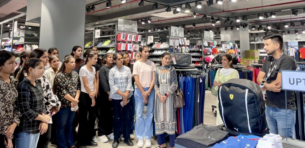 Kanya Maha Vidyalaya (Autonomous)always takes initiatives in organizing various informative programs to enhance knowledge and employability skills of the students. In continuation with these efforts,a one-day workshop was organized at Eastwood Village, Jalandhar, for the students of Bachelor of Vocation & Master of Vocation (Retail Management) byPG Department of Retail Management at PUMA Retail Brand Store. The resource person Mr. Ashwani Kumar acquainted the students on the topic “Impact of Retail Store Design and Store Layout on Customer Mind”.The workshop aimed to uncover how various elements such as store layout, signage, lighting, and product placement affect customers’ perceptions, emotions, and decision-making processes. The workshop seeks to provide actionable insights and practical strategies for creating store designs that attract and retain customers, leading to increased engagement and loyalty.Students attained knowledge about the strategies for optimizing store layouts to facilitate smooth navigation, enhance product placement for increased sales, and reinforce brand identity through cohesive design choices. By focusing on these aspects, the workshop provided actionable insights and practical strategies for creating store environments that not only attract and engage customers but also foster loyalty and drive business success.Principal Prof.(Dr.) Atima Sharma Dwivedi guided and motivated all the students and lauded the efforts of the HoD Dr. Rashmi Sharma and faculty members of Retail Managementfor guiding them towards a safe and bright future.