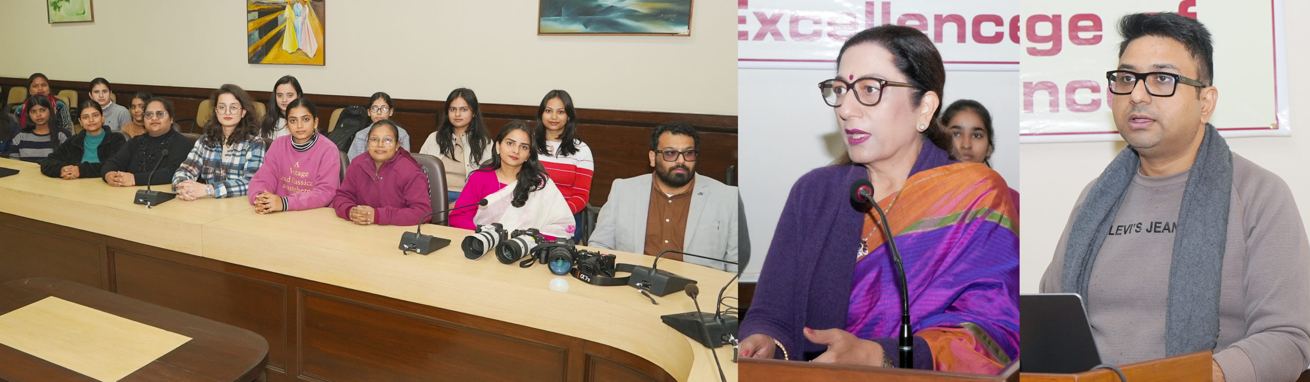 Kanya Maha Vidyalaya (Autonomous) PG Department of Journalism & Mass Communication organized a high-impact workshop titled “The Art of Storytelling” in association with Sony India. This intensive session was specifically curated to sharpen the narrative skills of aspiring media professionals by introducing them to industry-standard techniques and advanced visual communication. The workshop served as a vital platform for students to understand the shift from traditional reporting to modern, cinematic storytelling in the digital age. The workshop was led by the distinguished resource person, Mr. Sameer Ashraf, a prominent international photographer and expert from Sony India. Mr. Ashraf’s session transcended basic camera operations, focusing instead on the deep-rooted connection between photography, videography, and the aesthetics of art. He meticulously explained how technical parameters like depth of field, lighting ratios, and frame composition are not merely settings but essential tools for conveying emotion and narrative depth. By blending technical rigor with creative vision, he demonstrated how a creator can turn a simple visual into a powerful story. Throughout the interactive workshop, students were given the opportunity to explore the synergy between technical precision and artistic expression. Mr. Ashraf highlighted that the true “Art of Storytelling” lies in the ability to attach aesthetic value to every shot, ensuring that the visual language resonates with the audience. This collaboration with Sony India reflects KMV’s ongoing commitment to bridging the gap between academia and the media industry, providing students with the hands-on experience necessary to excel in a competitive global landscape. Prof Atima Sharma Dwivedi averred that these kind of workshops play a pivotal role in making the students more professional and skill based in their respective fields. She also lauded the efforts of Mr. Sehajpal Singh, Head, PG Department of Journalism & Mass Communication for successfully organising the workshop.
