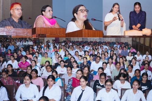Kanya Maha Vidyalaya (Autonomous ) organized a highly informative workshop on Cardiopulmonary Resuscitation (CPR) and First Aid. The workshop was organized by the Department of Student Welfare, Red Cross Society, Red Ribbon Club, and Eco-Club of Kanya Maha Vidyalaya. The event was inaugurated by Ms. Amaninder Kaur Brar, ADC, Jalandhar, Principal Prof. Dr. Atima Sharma Dwivedi and Dr. Surjit Lal, marking an inspiring beginning to an impactful awareness session. The workshop aimed to empower students with essential knowledge and hands-on training to handle medical emergencies efficiently. Dr. Ruchi and Dr. Ridhima from Unity Critical Care Multi-Speciality Hospital and Trauma Centre, Partap Bagh, Jalandhar conducted the session with great expertise. They apprised students of various aspects of first aid, explaining the significance of immediate medical response in critical situations. The resource persons demonstrated the correct techniques for measuring and managing blood pressure and performing CPR (Cardiopulmonary Resuscitation) -a vital life-saving skill used during cardiac arrest or respiratory failure. They also elaborated on the causes, symptoms, and prevention of electric shock, along with practical demonstrations on how to respond safely and effectively in such emergencies. Throughout the session, students actively participated and interacted with the experts, gaining practical insights into real-life emergency scenarios. The workshop emphasized the importance of awareness, preparedness, and presence of mind in saving lives before professional medical help arrives. Principal Dr. Atima Sharma Dwivedi appreciated the collaborative efforts of the organizing departments and commended the trainers for sharing valuable, life-saving information. She highlighted that such training sessions not only enhance students’ knowledge but also cultivate social responsibility and compassion -values central to holistic education at KMV. The event concluded on a positive note, leaving participants more confident and better equipped to handle health emergencies with promptness and care.