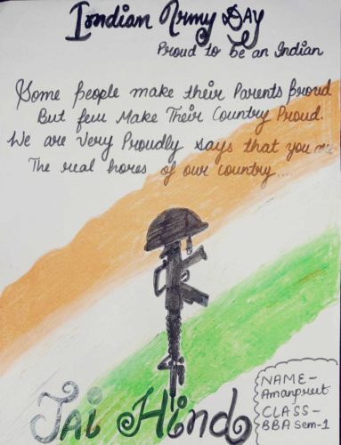Kanya Maha Vidyalaya- the Heritage & Autonomous institution, Seat of Women Empowerment with Top National and State Rankings by India Today Survey of Best Colleges 2020 (various categories) & Outlook Magazinecelebrated Army Day with full zeal & enthusiasm. To mark the celebrations, poster making & chart making activities were organised for the students. The activities were organised by the Department of Student Welfare. Students from all streams participated in these activities with full zeal and enthusiasm. Through their posters & charts, studentsexpressed their heartfelt gratitude and admiration to the Indian soldiers, who remain undeterred while laying down their lives for the sake of the nation. Students also highlighted the role of Indian Army in the protection of our country &the sacrifices they have made for their motherland. Principal Prof Dr Atima Sharma Dwivedi expressed her reverence to the Indian Army and averred that Indian soldiers are a role model for people in the country and their role in the nation building was outstanding. Principal Dwivedilauded the efforts of the students and urged them to take inspiration from the courage and determination of the Indian Army, which has been safeguarding the nation. Madam Principal lauded the efforts of Dr Madhumeet, Dean, Department of Student Welfare for successfully organising the celebrations.