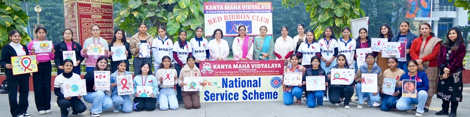 Kanya Maha Vidyalaya (Autonomous) Department of Student Welfare along with Red Ribbon Club, Eco Club and NSS Unit organised a Poster Making Competition to mark World AIDS Day. The theme for this year was “Empower Community”. The event aimed at spreading awareness about HIV/AIDS, promoting health education, and encouraging students to participate actively in social and community-oriented initiatives. A large number of students from various departments participated with great enthusiasm and creativity. Their posters reflected deep awareness, sensitivity, and a strong sense of responsibility towards public health. Themes such as “Know Your Status”, “End Inequalities, End AIDS”, and “Safe Practices for a Healthy Life” were highlighted through impactful visuals and slogans. Prof. Dr. Atima Sharma Dwivedi appreciated the initiative taken by the student bodies and faculty members. She applauded the meaningful participation of students and encouraged them to continue contributing towards such socially relevant causes. She emphasised that activities like these help in shaping responsible citizens and strengthen the college’s commitment to community welfare. The event concluded successfully, leaving a strong message of awareness and collective responsibility among the youth.