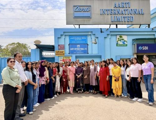 Kanya Maha Vidyalaya (Autonomous) MBA students visited Aarti InternationalLimited in Ludhiana for an educational and industrial exposure tour.Aarti International Ltd. is a leading textile manufacturing and export company based in Ludhiana. During the visit, students observed how raw cotton is transformed into yarn through advanced spinning technology. They learned that cotton fibers pass through several stages such as cleaning, carding, drawing, and spinning to produce high-quality yarn used in textile manufacturing.Industry experts at Aarti International interacted with the students and explained different aspects of the organization’s operations, including sourcing of raw materials, production processes, quality control, packaging, and export procedures. The students also learned about the importance of innovation, sustainability, and quality standards in maintaining the company’s strong presence in international markets.The visit offered valuable insights into the operations of a large textile manufacturing and export-oriented organization. During the industrial tour, students were introduced to different stages of textile production and gained an understanding of how modern technology and efficient management practices contribute to large-scale manufacturing and global competitiveness.The students expressed their appreciation for the opportunity to interact with industry professionals and observe the functioning of a successful manufacturing organization. Prof. Dr. Atima Sharma Dwivedi averred that through such industrial visits and experiential learning initiatives, KMV continues to strengthen its commitment to academic excellence and holistic development, enabling students to bridge the gap between theory and practice and preparing them to excel in the corporate world.