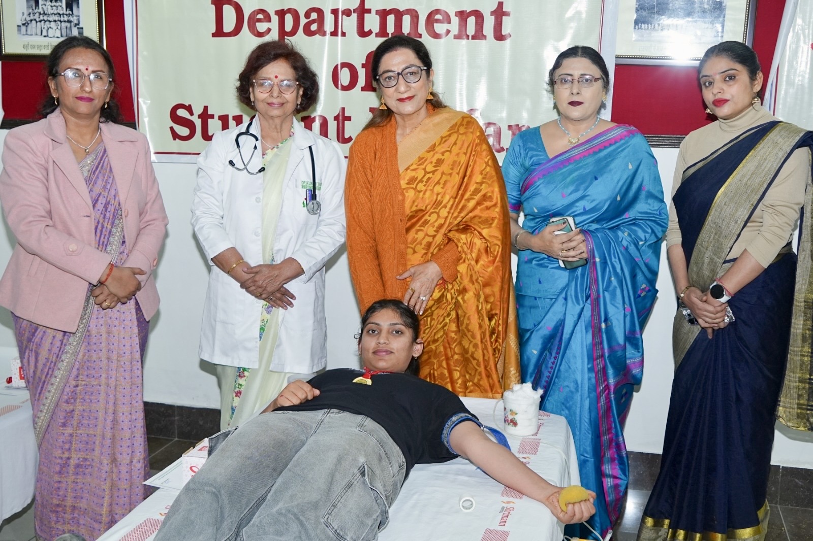 Kanya Maha Vidyalaya (Autonomous) organised a Mega Blood Donation Camp on its campus, witnessing an overwhelming and spirited response from the student community. The camp was conducted by the KMV Red Ribbon Club& Eco Club under the aegis of the Department of Student Welfare. The event was inaugurated by Prof. (Dr.) Atima Sharma Dwivedi, who lauded the noble spirit of the young donors and emphasised that blood donation is one of the highest forms of humanitarian service. She highlighted that such initiatives are essential in instilling a sense of social responsibility and empathy among students, aligning perfectly with the institution’s mission of holistic development and community outreach. During the drive, 87 units of blood were collected, with a large number of students stepping forward as first-time donors. Every volunteer underwent a preliminary health screening, including haemoglobin and blood pressure checks, to ensure clinical safety under the supervision of expert doctors. The donors were provided with refreshment kits and certificates of appreciation to recognise their contribution toward saving lives. The faculty members also participated actively, setting a leadership example for the youth. This successful drive once again underscored the KMV’s unwavering commitment to nation-building and selfless service to society. Prof. Dwivedi lauded the efforts of Dr Madhumeet, Dean, Department of Student Welfare & Ms Shikha Vashisht for successfully organising the camp.