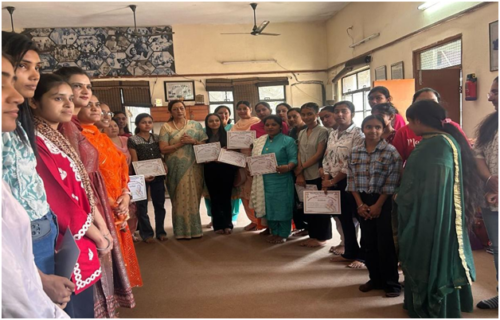 The Gandhian Studies Centre of Kanya Maha Vidyalaya organized a valedictory and mentoring session marking the conclusion of a free three-month vocational training program for rural women. Principal Dr. Atima Sharma Dwivedi mentored and encouraged the participants, highlighting the importance of self-reliance and skill development. She later awarded certificates to the women, celebrating their successful completion of the program.