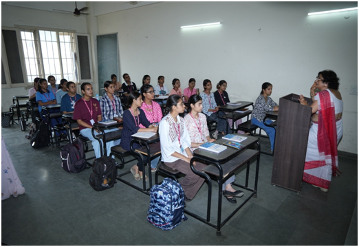 perspectives on how Indian Knowledge Systems can enrich and enhance modern academic curricula. The panel lists emphasized the holistic, interdisciplinary, and sustainable approaches embedded in IKS, highlighting its potential to address contemporary challenges in education, environment, ethics, and innovation. The Principal of KMV, Prof. Dr. Atima Sharma Dwivedi, in her inaugural address, emphasized the significance of Indian Knowledge Systems in building a self-reliant and culturally grounded academic framework. She highlighted KMV’s commitment to nurturing values, critical thinking, and a sense of rootedness among students through such initiatives. Students also participated in this discussion and talked on diverse topics including – scientific basis of traditional practices in Ayurveda and agriculture, literary and philosophical richness of ancient Indian texts, Mathematical and astronomical achievements in ancient India, Relevance of Indian ethics and values in modern management and commerce and Integration of IKS with NEP 2020 and its implications for interdisciplinary research. The session concluded with an engaging Question & Answer, where students posed thoughtful questions, reflecting their growing interest in IKS. The event was lauded for its intellectual depth, interdisciplinary approach, and its role in reviving interest in India’s rich academic heritage. Overall, the panel discussion was a significant step towards re-establishing the relevance of Indian Knowledge Systems in today’s educational landscape and strengthening the institution’s commitment to academic excellence rooted in cultural consciousness.