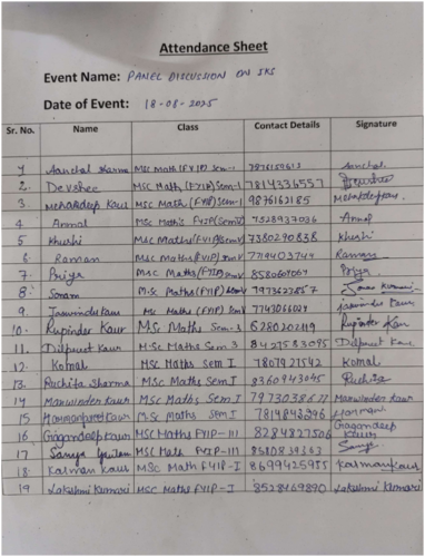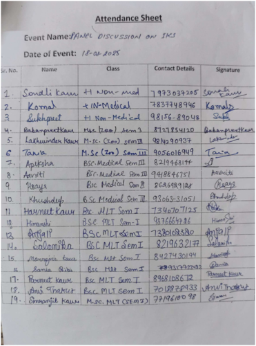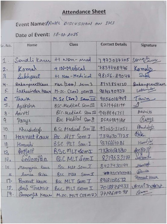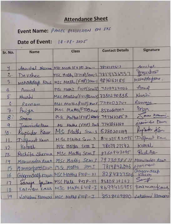 A thought-provoking Panel Discussion on Indian Knowledge Systems (IKS) was organized on August 18, 2025 by SAARTHI Committee at Heritage Institution Kanya Maha Vidyalaya (Autonomous), Jalandhar. Panel discussion was aimed at exploring the relevance and application of IKS across various academic disciplines. The event, held under the aegis of the college’s ongoing efforts to integrate traditional wisdom with contemporary education, witnessed enthusiastic participation from faculty, scholars, and students. The panel discussion brought together eminent academicians and experts from diverse fields including sciences, humanities, commerce, and social sciences, each offering insightful